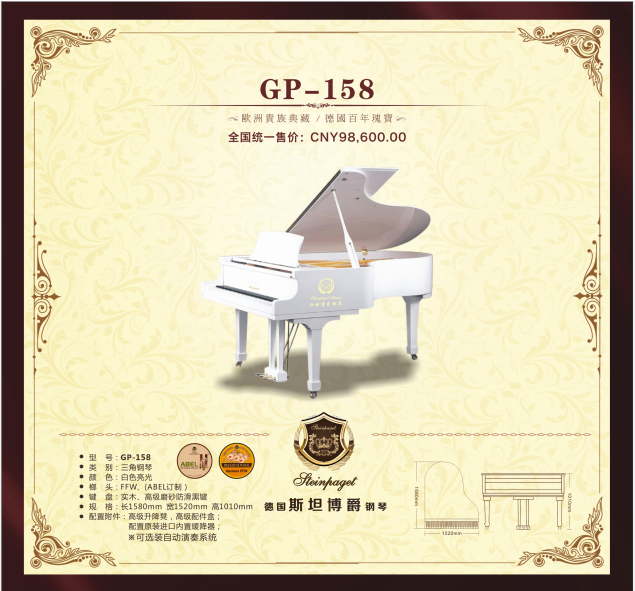 斯坦博爵是一家專注于STEINPAGET立式鋼琴與三角鋼琴的研發(fā)、生產(chǎn)與銷售的公司。我們巧妙融合先進的德國制琴工藝與獨特鋼琴設計,致力于打造卓越品質(zhì)。我們以三大核心價值為基石:經(jīng)營理念追求“高效 · 品牌 · 服務”,產(chǎn)品理念恪守“傳承 · 創(chuàng)新 · 品質(zhì)”,服務宗旨奉行“客戶需求即工作,客戶要求即追求。為鑄就非凡品質(zhì),我們?nèi)轿煌度耄阂M德國、美國、日本尖端設備與優(yōu)質(zhì)制琴材料;特邀德國頂級設計師及美國專家顧問傾情指導,傳承歐洲經(jīng)典工藝與純正德國精髓;斥資打造恒溫恒濕生產(chǎn)車間及成品鋼琴靜置倉,確保全球任何氣候下STEINPAGET鋼琴音質(zhì)純美、演奏性能始終如一;并在中國構(gòu)建完善售后服務體系,提供國際水準的真誠服務。